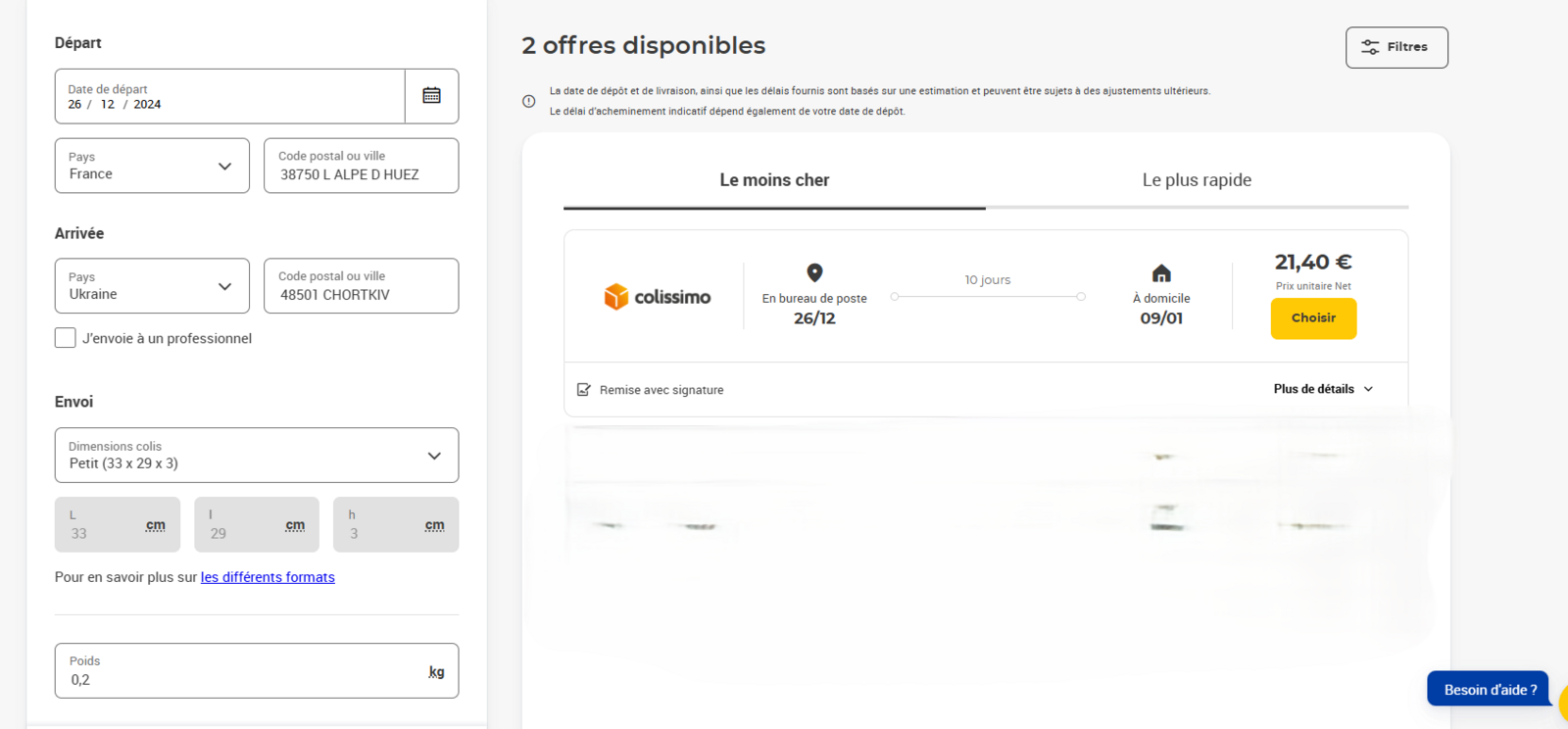 Frais de port Colissimo 200g = 21.40 €